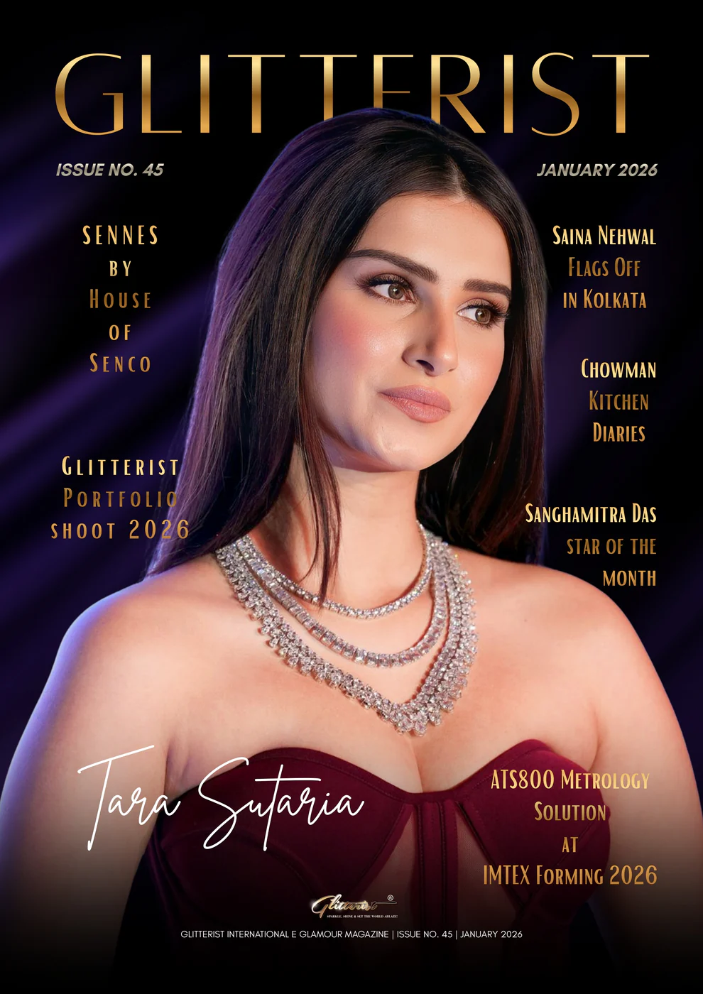 Issue No. 45 also marks a milestone moment for Glitterist Magazine with the successful execution of our first-ever professional Portfolio Shoot, organized in collaboration with The Bullygunge Studio, Kolkata. This initiative, featuring Barna Raha Banerjee, Ananya Sen, and Sanghamitra Das, reinforces Glitterist’s commitment to not just showcasing talent, but actively creating platforms where aspiring models can grow, learn, and step confidently into the industry.